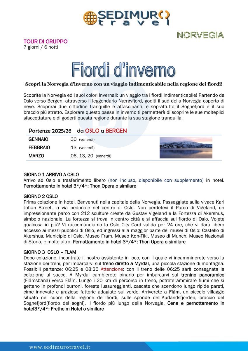 Fiordi d’inverno da Oslo a Bergen 7 giorni